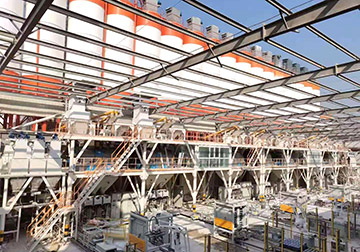 砂漿生產線主要由原料儲存系統、配料稱重系統、輸送系統、混合系統、氣相平衡系統、包裝系統及除塵系統構成。主控制系統依據選定工藝配方下達生產指令,系統自動從儲料倉中按配比提取原料,原料經配重后依次進入待混倉及無重力高效混合機,實現快速混合作業。