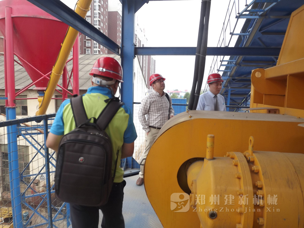 來自韓國的客戶在建新外貿部人員的帶下,參觀了大型混凝土攪拌站的設備,建新公司精湛的工藝、合理的設計,客戶贊不絕口,直挑大拇指。
